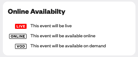 Watch all Online content in event listings in the Schedule and access the Channel streaming live sessions and studio interviews each day. Look for LIVE, VOD, and Online icons to indicate what content is available and how to watch it.